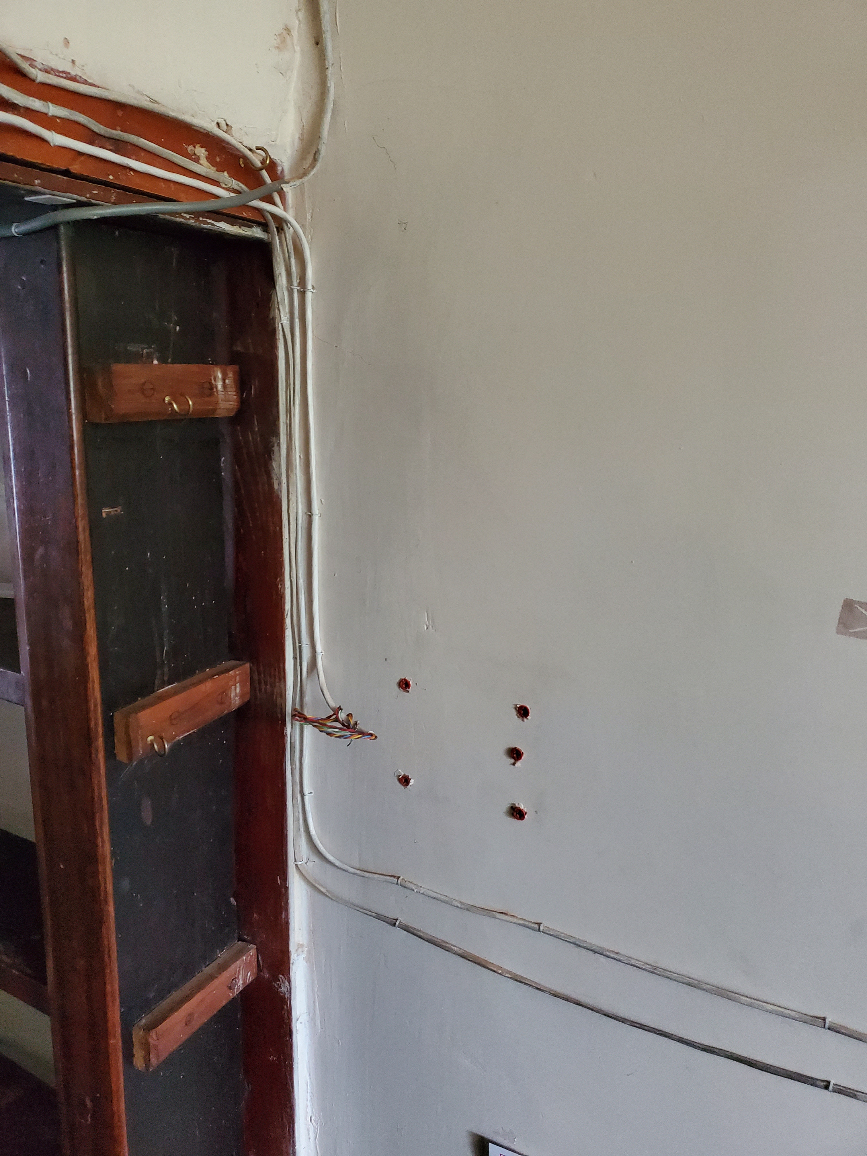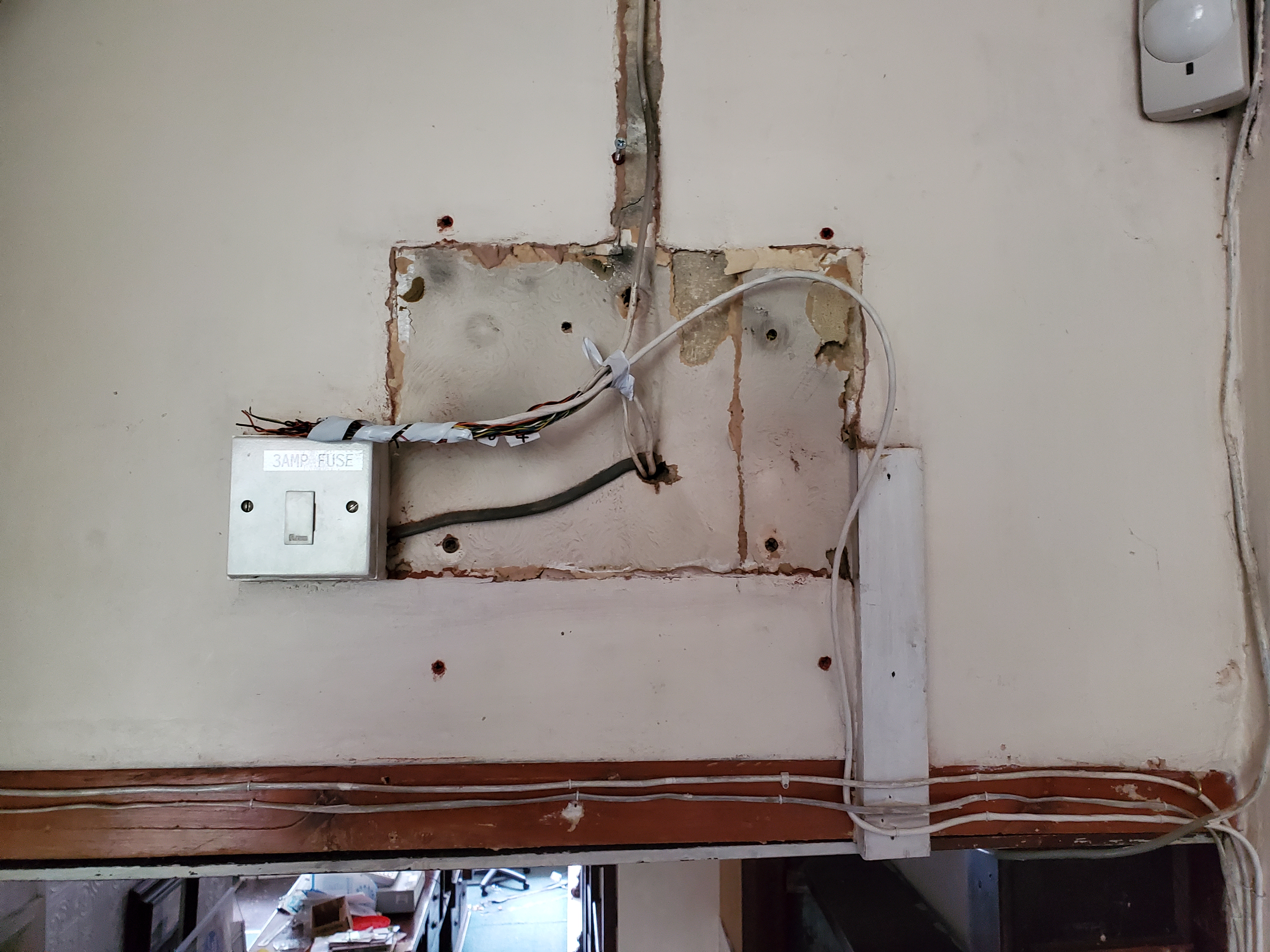 Three weeks of toing and froing the site and rush in to switch off the alarm as usual, only to find its shadow on the wall. No actual alarm. Head spin moment. Where’s the alarm gone? Have we been robbed in the night? Who would break in and steal an alarm? Very unnerved initially. Then after a frantic phone call to the previous owners relieved and somewhat astonished to discover that someone had let themselves in and taken what they believed was still theirs. A fixture that apparently wasnt actually a fixture.