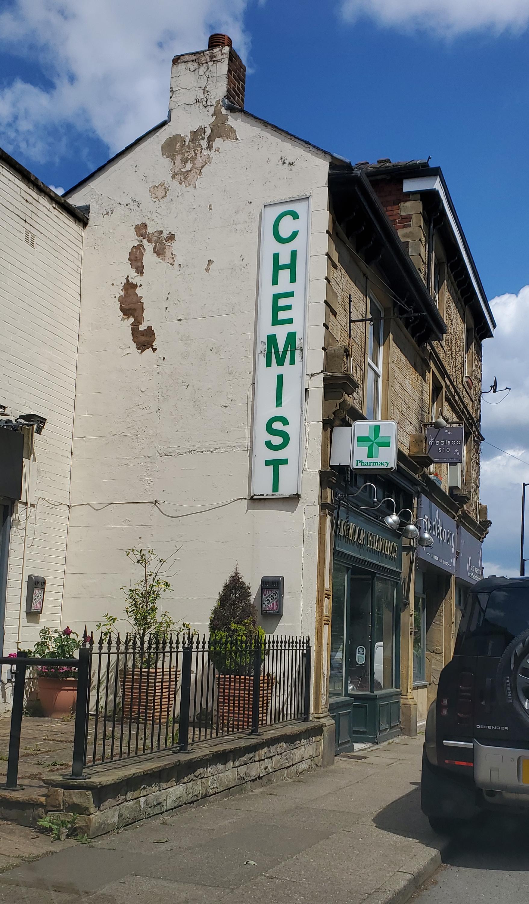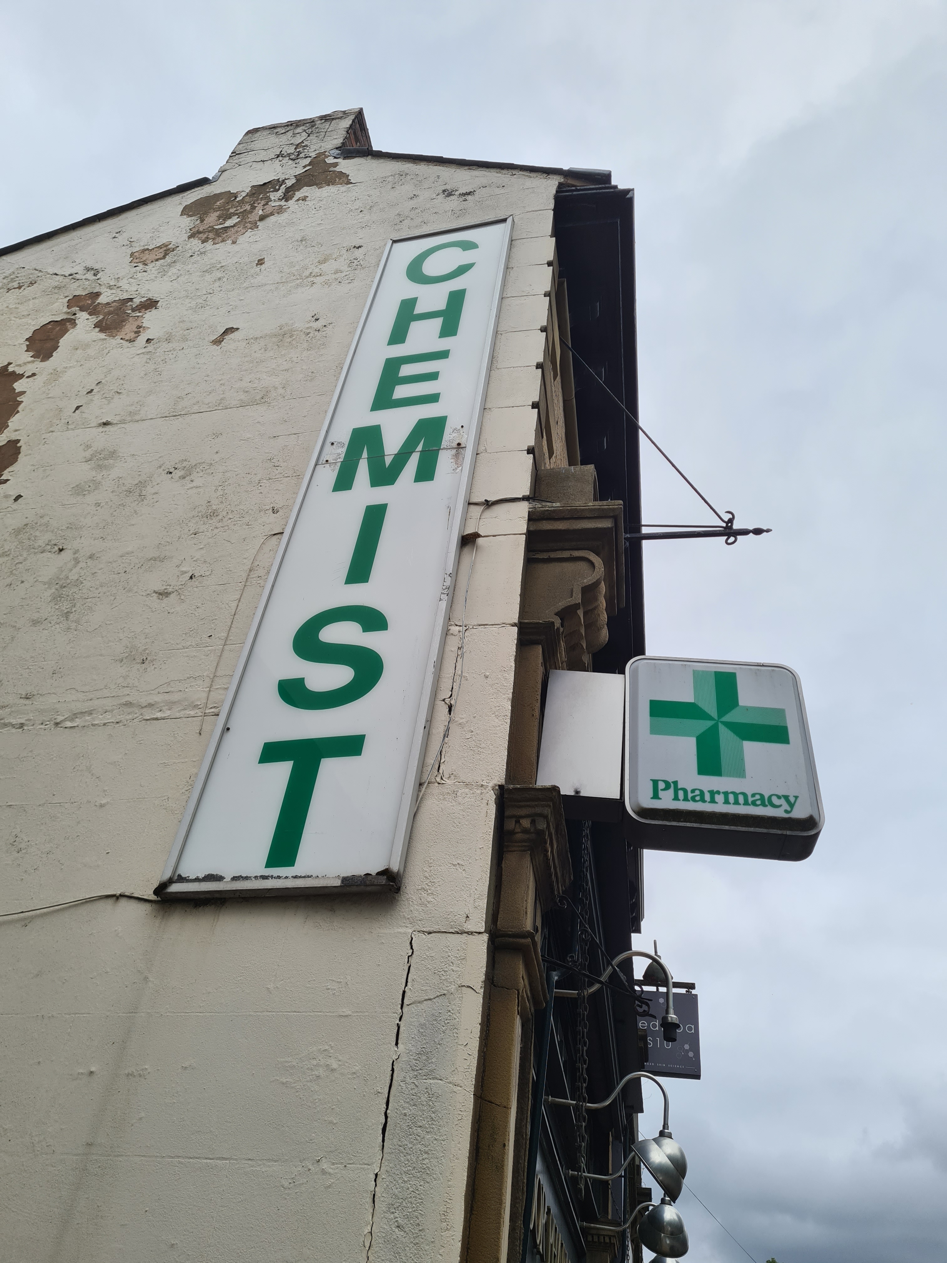 Not long after the alarm taking a sabbatical, driving up the road towards the pharmacy on a nice bright afternoon. Double take. There appears to be a man up a ladder painting the gable end of the pharmacy. Surely i’m mistaken? Nope. That is indeed a man up a ladder painting my wall… and where is my sign? The huge 10 foot chemist sign that has been heralding the pharmacy site at least since the 80s. Screech to a stop. Run up to said ladder man, “Excuse me, what are you doing?” “I’m painting the wall”. “Yes, I can see that. But who gave you permission to paint that wall?” “The owner.” “Well, that’s a bit difficult, because I’m the owner and I didn’t give you permission”. “Oh, I see. Well, I was told the owner had given permission.” “Well, I most certainly didn’t. So please can you stop what you are doing , climb down the ladder and get in touch with whoever gave you permission to paint my wall and tell them I don’t want it painting? And where’s my sign?” “Oh, that. I think that’s long gone”. Heart racing. Ladder man calls his boss who calls his boss who meets me on site. Apparently its all a big ‘misunderstanding’. He was renovating his business and thought our wall could do with an uplift and unfortunately my big vintage chemist sign was going to detract from his new signs underneath. A crushing example of one person’s treasure that is another man’s idea of rubbish.