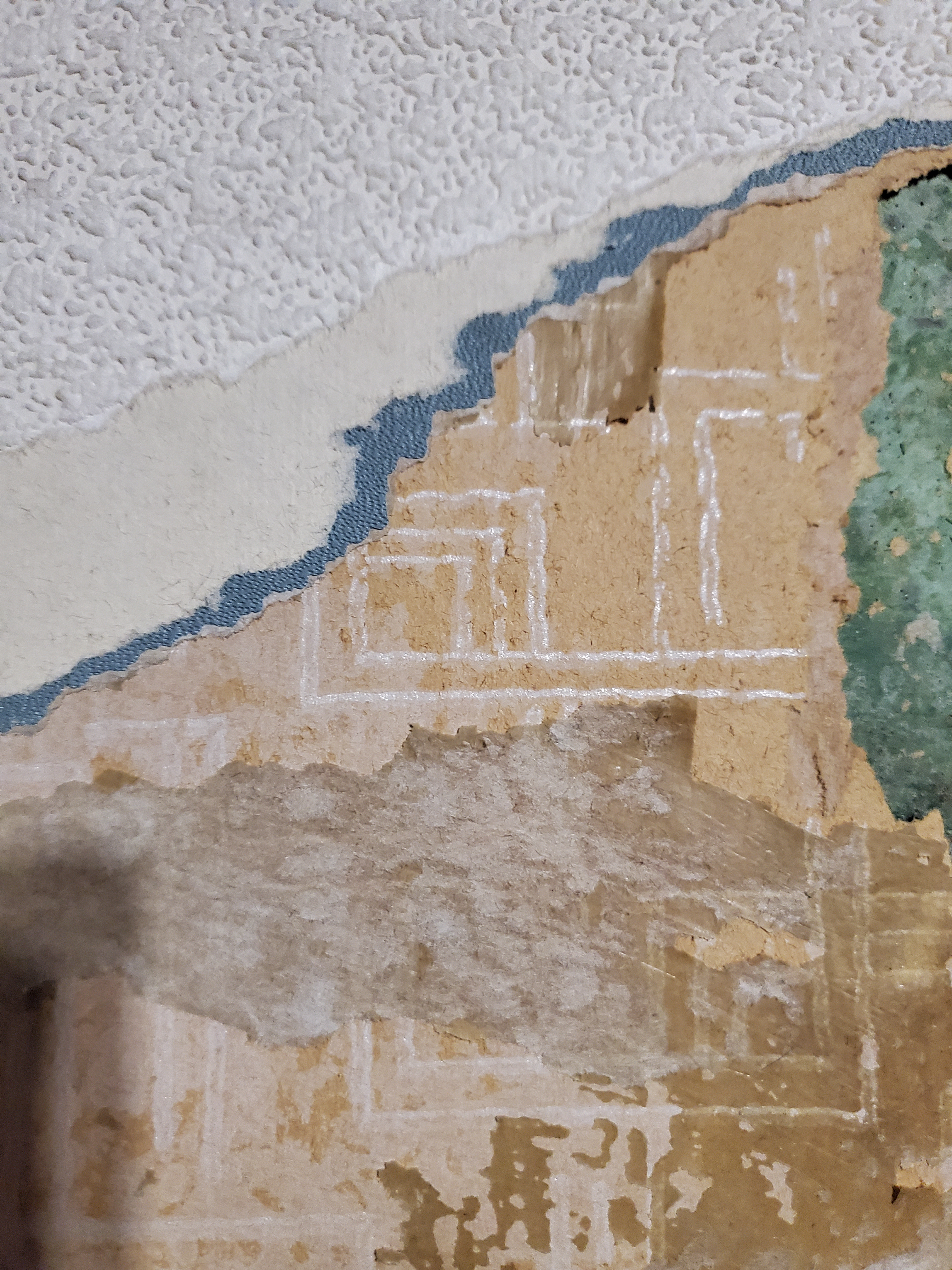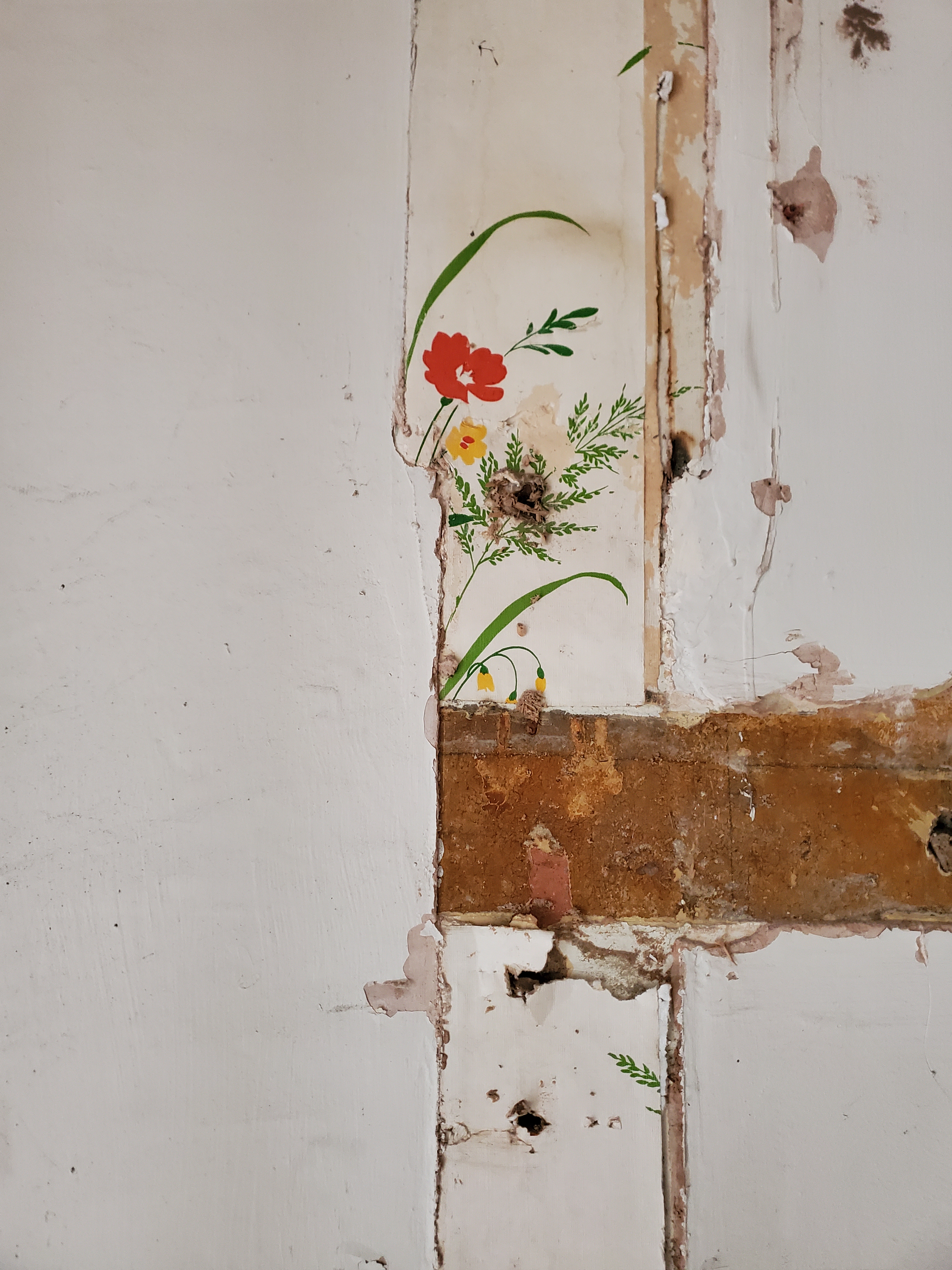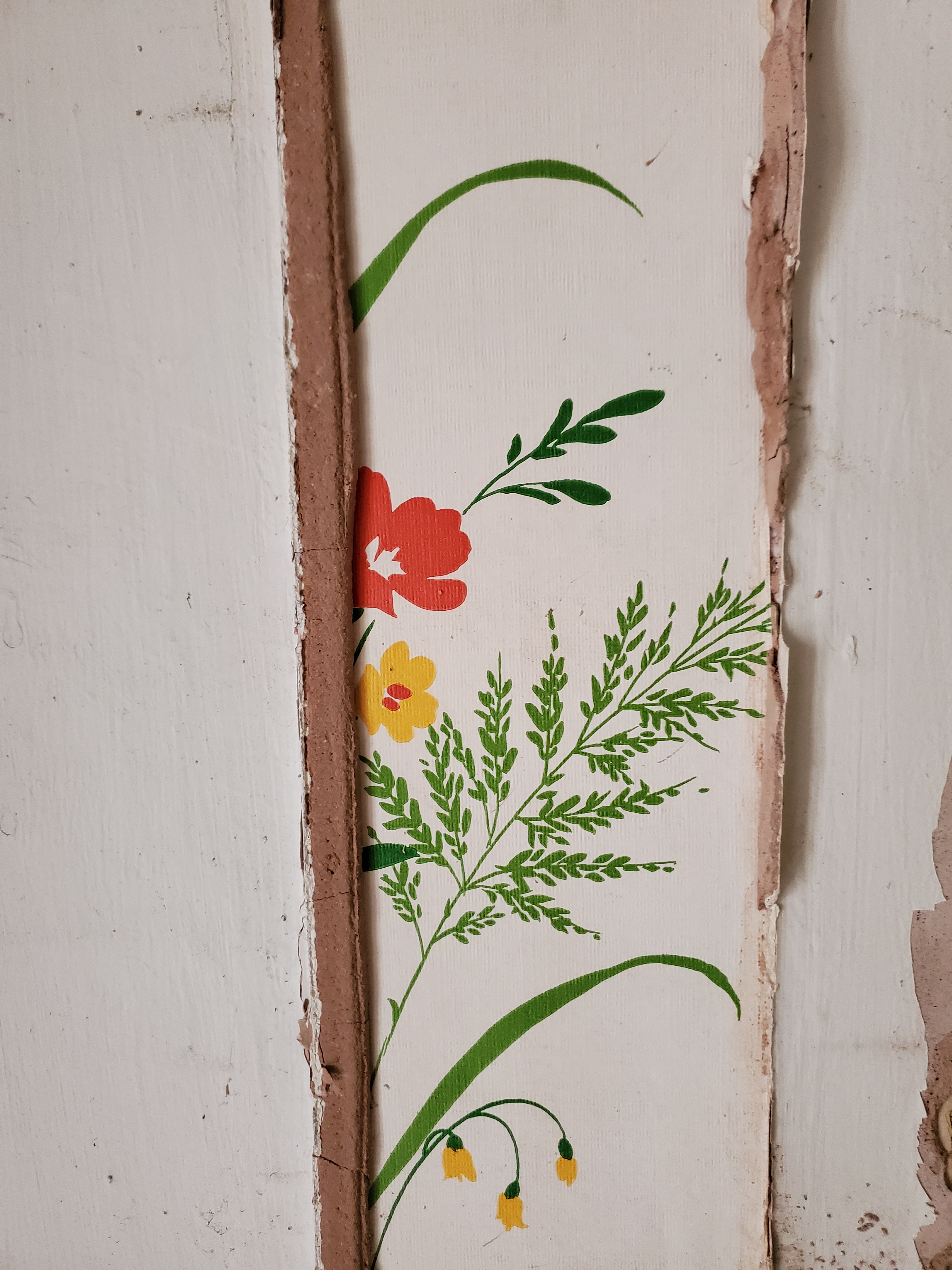 Loving the little swatches of old wallpaper that are being revealed during the renovation, a timeline of design history, hinting at the lives lived in the building before. In spite of the rather sad looking switch shadow on the wall, it feels a very happy place.